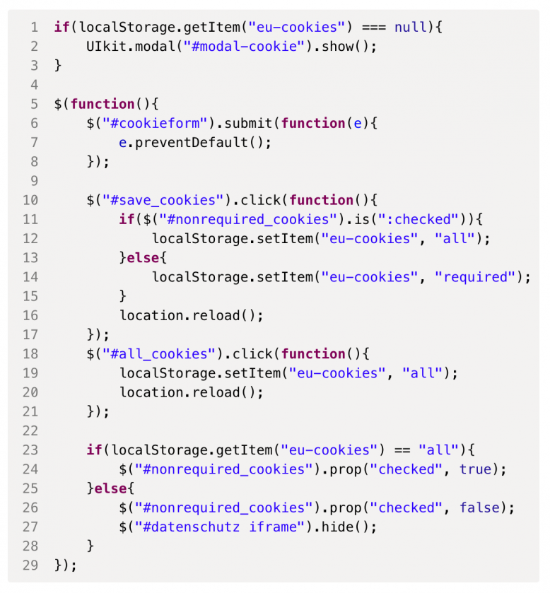 unter Ordner inc auch die cookie_modal.php integrieren und über den Footer anklickbar machen