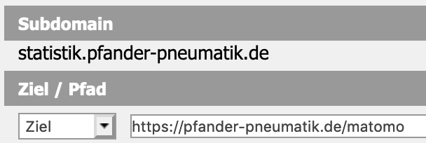 wenn auf Domain https läuft, muss beim Anlegen der Subdomain eine Weiterleitung direkt auf den Statistik-Ordner gelegt werden, siehe