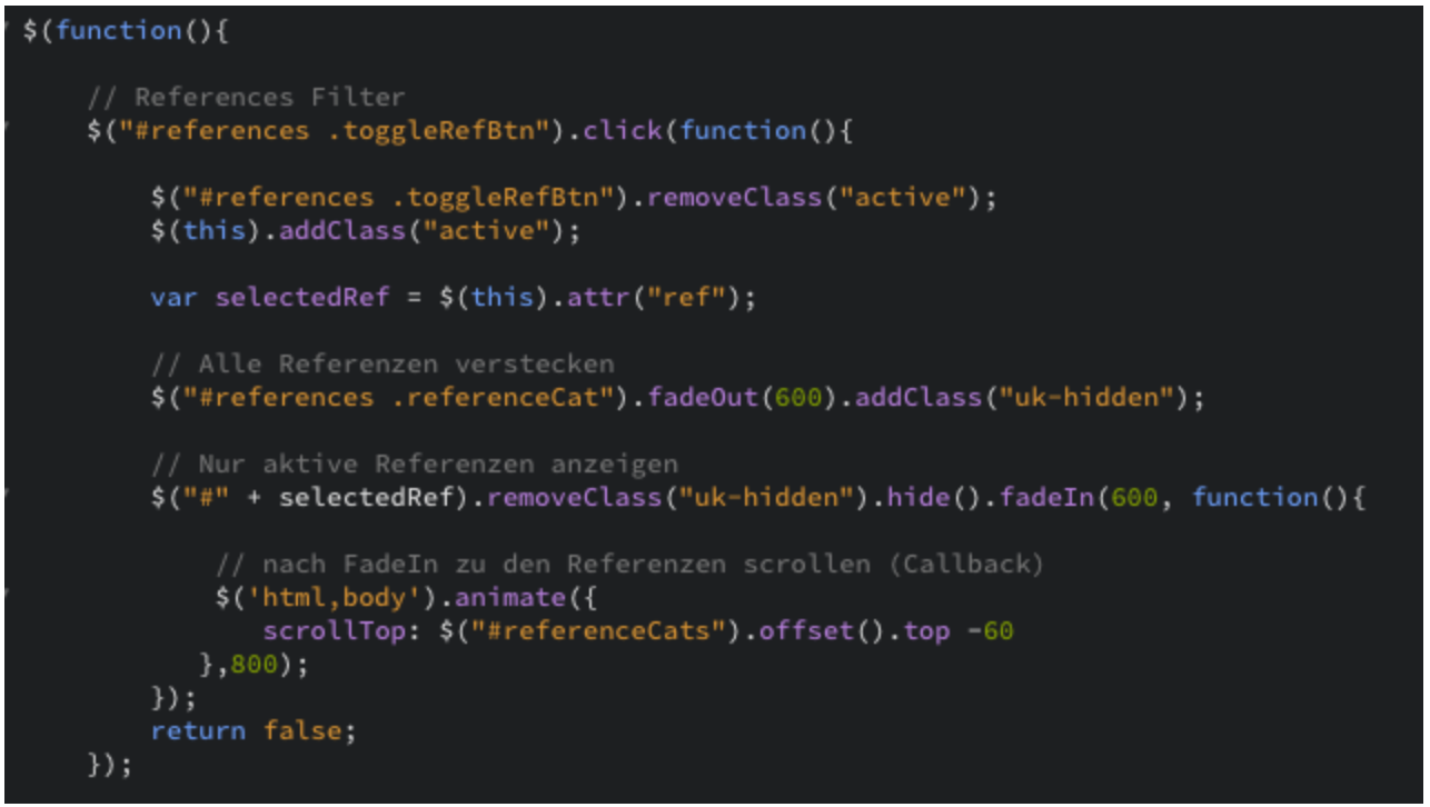 Somit kann den ein- und auszublendenden Sektionen eine eindeutige Id übergeben werden